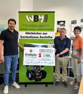 Westdeutsche Bibliothek der Hörmedien für blinde, seh- und lesebehinderte Menschen e.V. erhält 2.500 Euro Spende von der Krombacher Brauerei