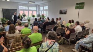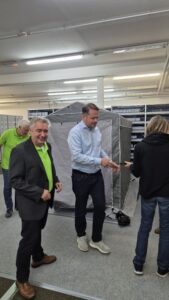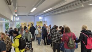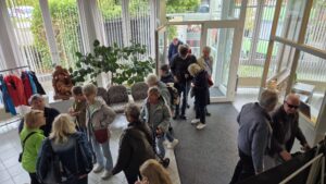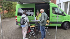 Viele Besucherinnen und Besucher aus nah und fern sind gekommen, um mit uns dieses Jubiläum zu feiern. Es gab Führungen durch die Räumlichkeiten, viele Informationen zu Technik und Bezugsmöglichkeiten und Treffen mit den engagierten Sprecherinnen und Sprechern. Dazu stellten die Firmen Papenmeier, Feelware, Optik Viehoff, Synphon und der Deutsche Hilfmittelvertrieb ihre Produkte vor. Die Verbände des BSVW, der Pro Retina sowie der atz e.V. standen für Fragen aller Art bereit. Das Blickpunkt Auge-Mobil aus Dortmund stand für alle Fragen bereit, ebenso das Regionalbüro Alter, Pflege und Demenz mit einem Demenzparcour. Im kontrastarmen Zelt konnten Angehörige sich mit Simulationsbrillen anschauen, wie man bei verschiedenen Augenerkrankungen die Umgebung wahrnimmt.